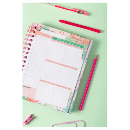Además, cuenta con un índice, hojas para notas y un práctico sobre para guardar documentos o recordatorios importantes. Todas las hojas son de 80 gramos, lo que garantiza una escritura cómoda y sin traspaso.