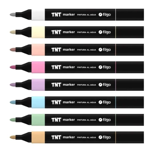 Llevá color y creatividad a tus proyectos con este set de 8 marcadores Filgo TNT en delicados tonos pastel. Con punta redonda de 3.0 mm, ofrecen trazos suaves y precisos, ideales para múltiples superficies como papel, cartón, vidrio, madera y más.