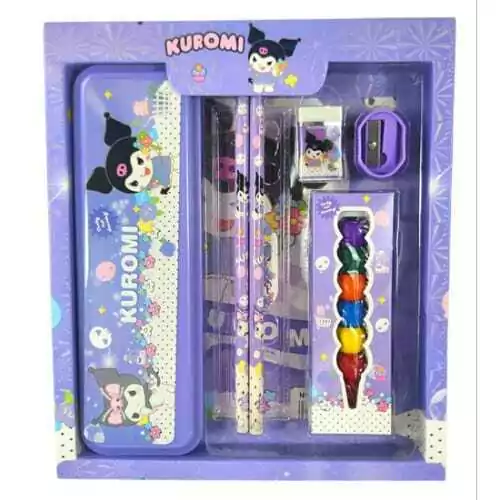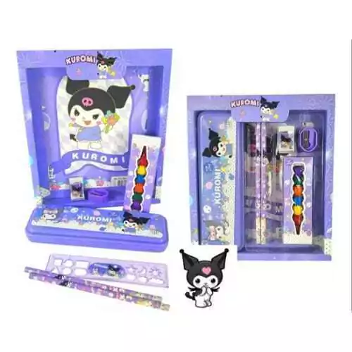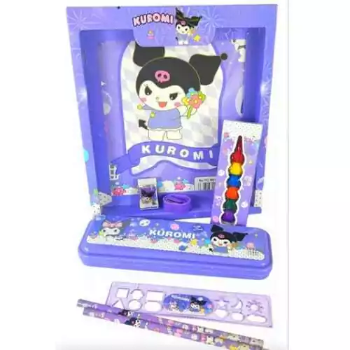 Descubre este adorable set escolar inspirado en el personaje mas querido Kuromi, este set combina funcionalidad, estilo y diversión, perfecto para la escuela o actividades creativas.